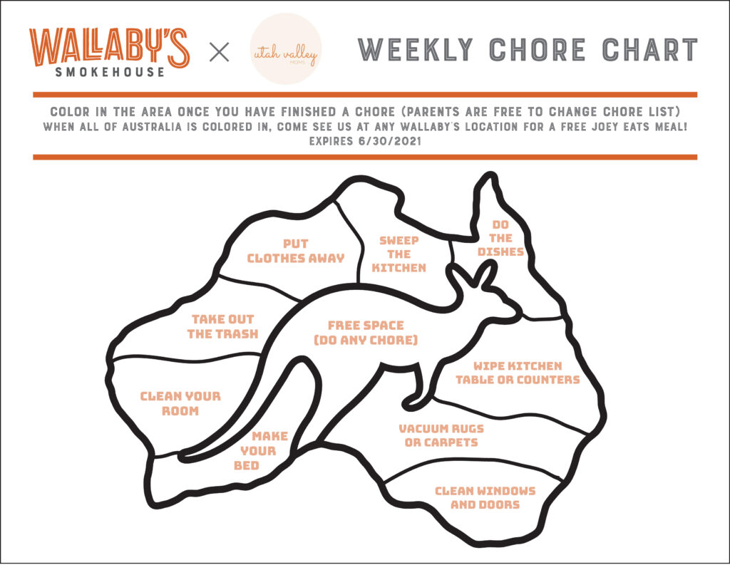 Print out our Kids Chore Chart, fill it out and turn it in for a Free Kids Meal in June!