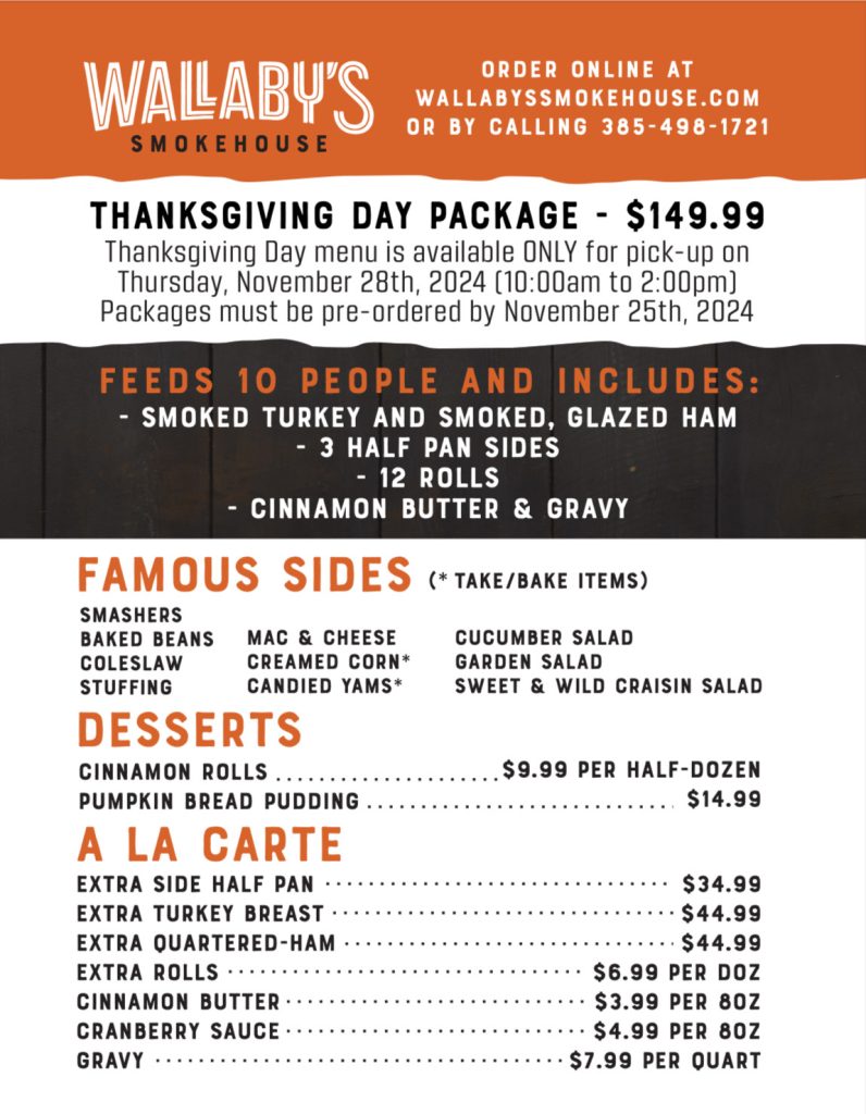 THANKSGIVING PACKAGES ARE NOW ON SALE- Call to place your order today 385-498-1721!